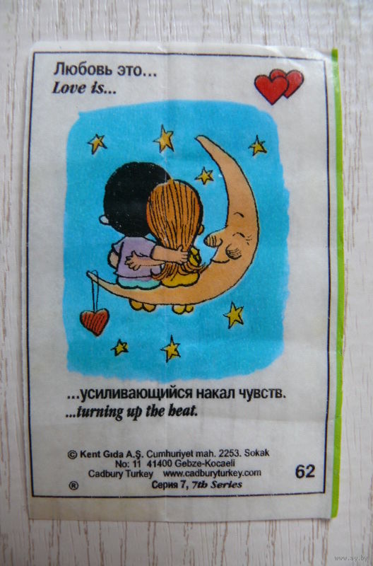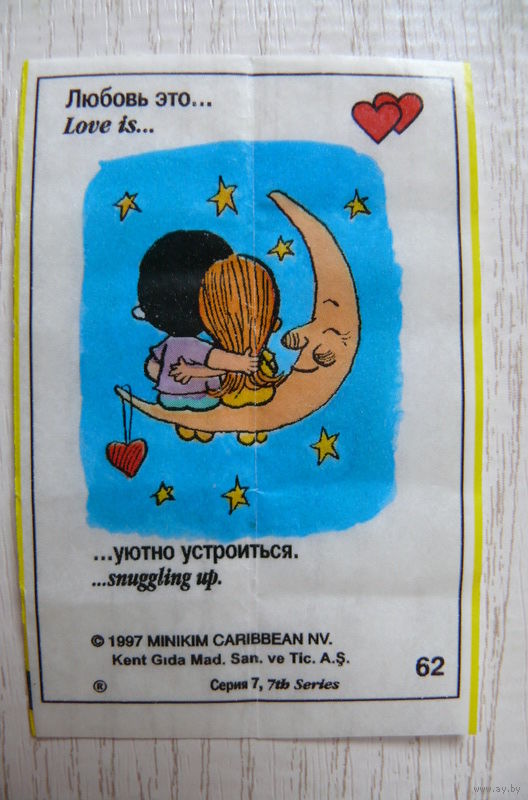 Вкладыш, жевательная резинка, Love is ... Любовь это ...; серия 7 (цена за 1 шт.) номер 62.