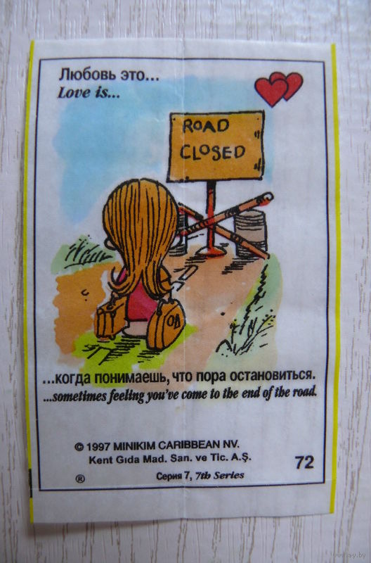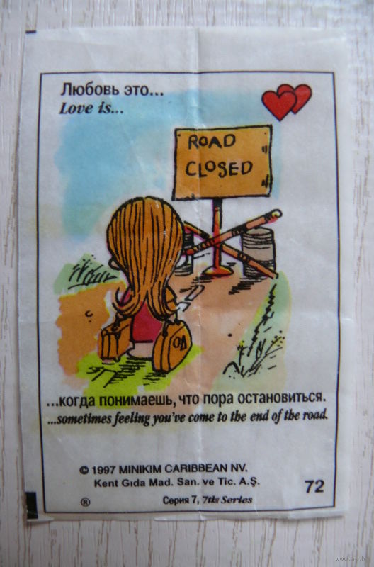 Вкладыш, жевательная резинка, Love is ... Любовь это ...; серия 7 (цена за 1 шт.) номер 72.