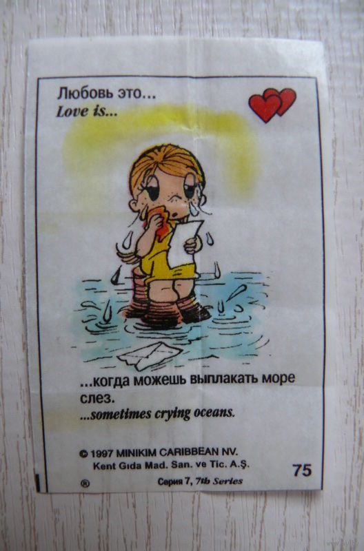 Вкладыш, жевательная резинка, Love is ... Любовь это ...; серия 7 (цена за 1 шт.) номер 75 (письмо).