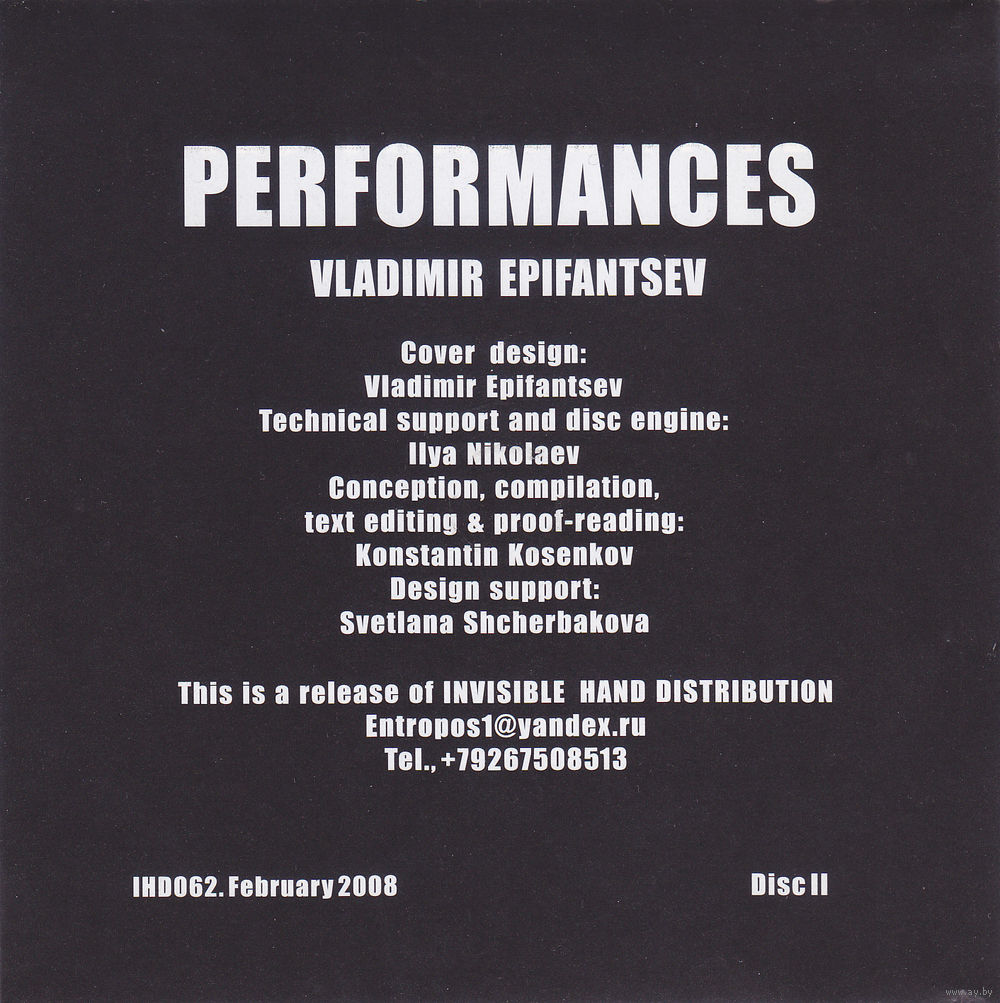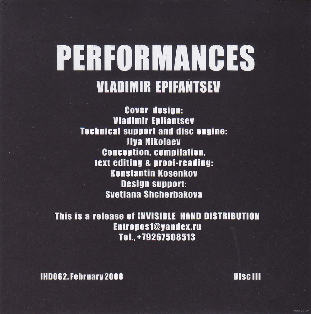 | Сборник театральных перформансов В. Епифанцева на трех DVDr дисках. | |