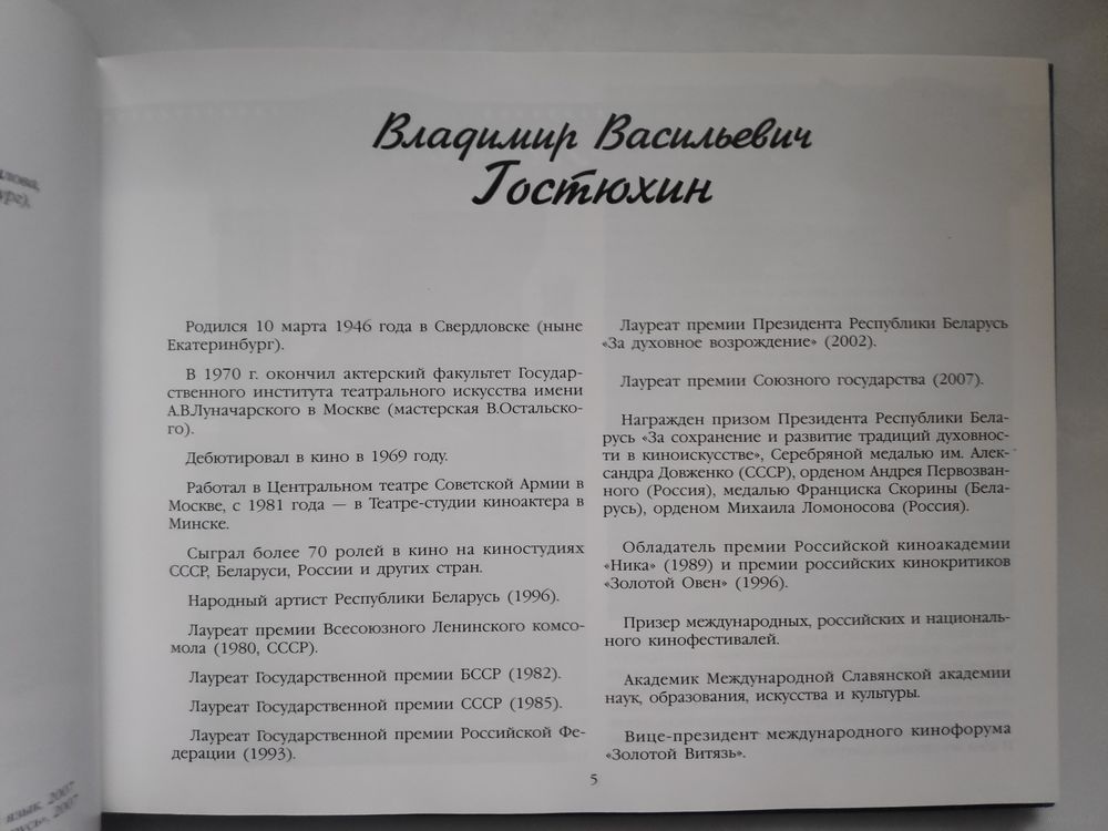 Это издание посвящено творческому пути знаменитого советского и белорусского актера Владимира Васильевича Гостюхина.