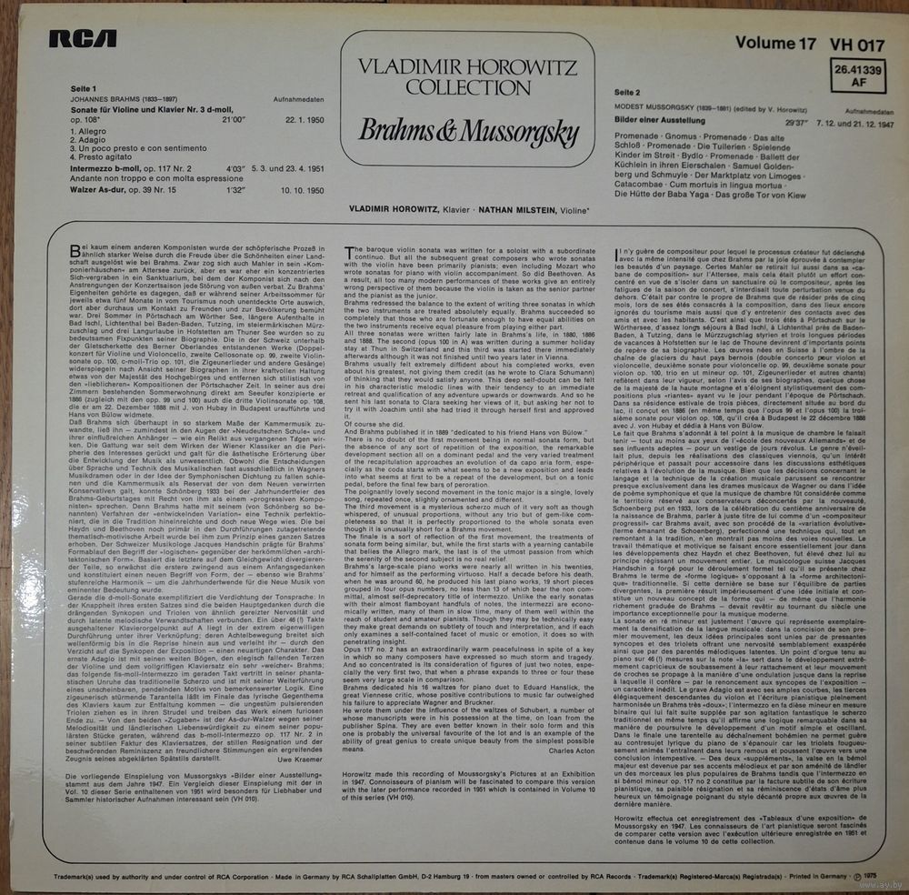 Vladimir Horowitz, Nathan Milstein – Brahms & Mussorgsky