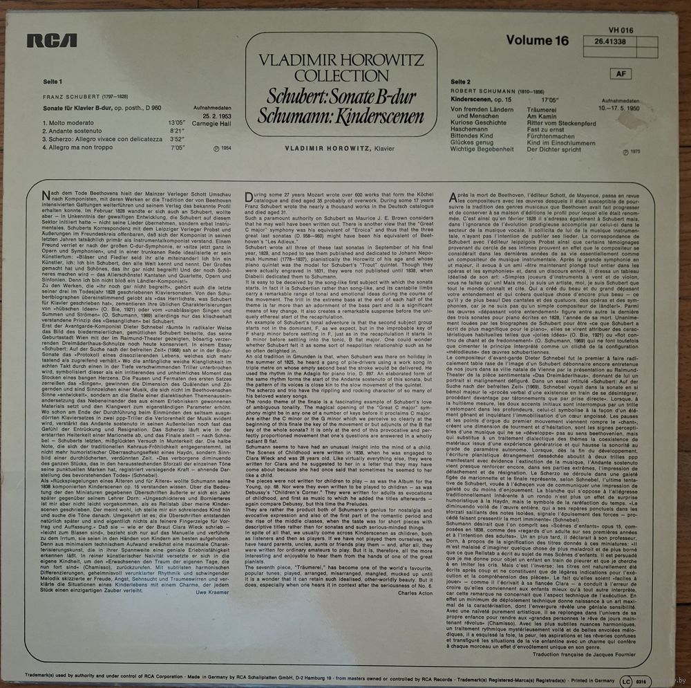 Vladimir Horowitz, Schubert / Schumann – Sonate B-dur / Kinderscenen