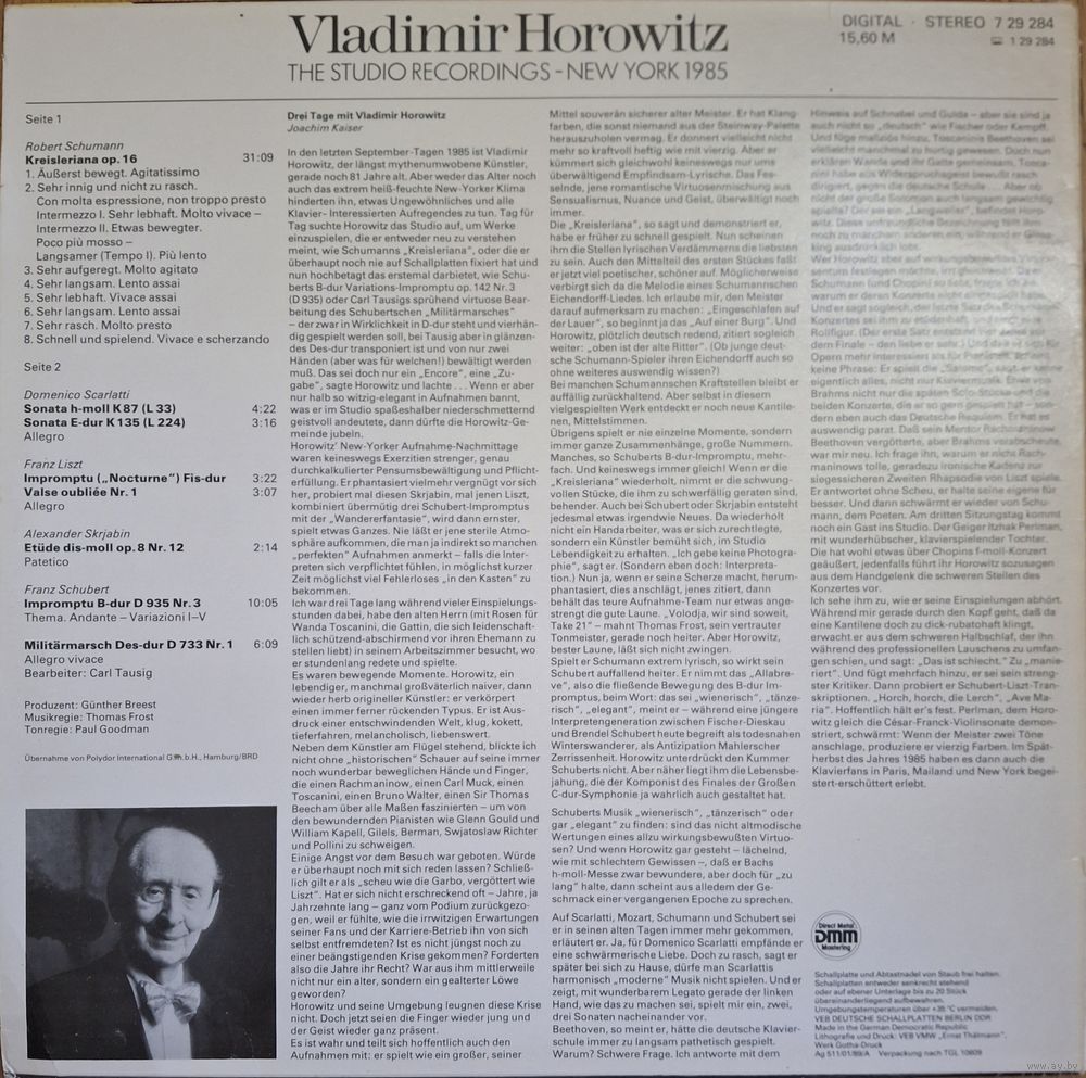 Vladimir Horowitz – The Studio Recordings - New York 1985: Liszt / Scarlatti / Schubert / Schumann / Scriabin