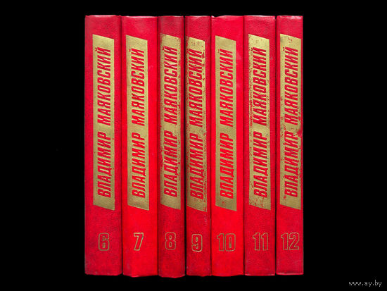 Владимир Маяковский. Собрание сочинений в 12 томах. Издательство "Правда", Москва-1978г., иллюстрации, твёрдый переплёт, обычный формат. Том 1 - стихотворения (1912-1921) и поэмы (1914-1920): "Облако в штанах", "Флейта-позвоночник", "Война и мир", "Человек" и "150 000 000". Том 2 - стихотворения (1922-1923) и поэмы (1922-1923): "Люблю", "IV Интернационал", "Пятый Интернационал", "Про это" и "Рабочим Курска, добывшим свою руду, временный памятник работы Владимира Маяковского". Том 3 - стихотворения (1924-1926) и поэмы (1924-1925): "Владимир Ильич Ленин", "Летающий пролетарий". Том 4 - стихотворения (1926-1927) и октябрьская поэма Маяковского "Хорошо!". Том 5 - стихотворения 1928 г. Том 6 - стихотворения (1929-1930), фрагменты поэмы "Во весь голос", стихи детям (1917-1930), памфлеты, очерки и зарисовки. Том 7 - "Окна" роста и Главполитпросвета" (1919-1922) и тексты "Окон", переработанные Маяковским в 1929 году для сборника "Грозный смех". Том 8 - агитплакаты, лозунги, реклама (1919-1930). Том 9 - пьесы (1913-1921): "Владимир Маяковский", Мистерия-буфф", "А что, если?", "Пьеска про попов, кои не понимают, праздник что такое", "Как кто проводит время, праздники празднуя", "Чемпионат всемирной классовой борьбы", "Вчерашний подвиг". Том 10 - пьесы (1928-1930): "Клоп", "Москва горит", "Баня", киносценарии (1926-1928) и неоконченные произведения "Бенц № 22", "Комедия с убийством". Том 11 - статьи, заметки, выступления (1913-1928). Том 12 - статьи, заметки, выступления (1928-1930), письма к родным, документы о Маяковском.
