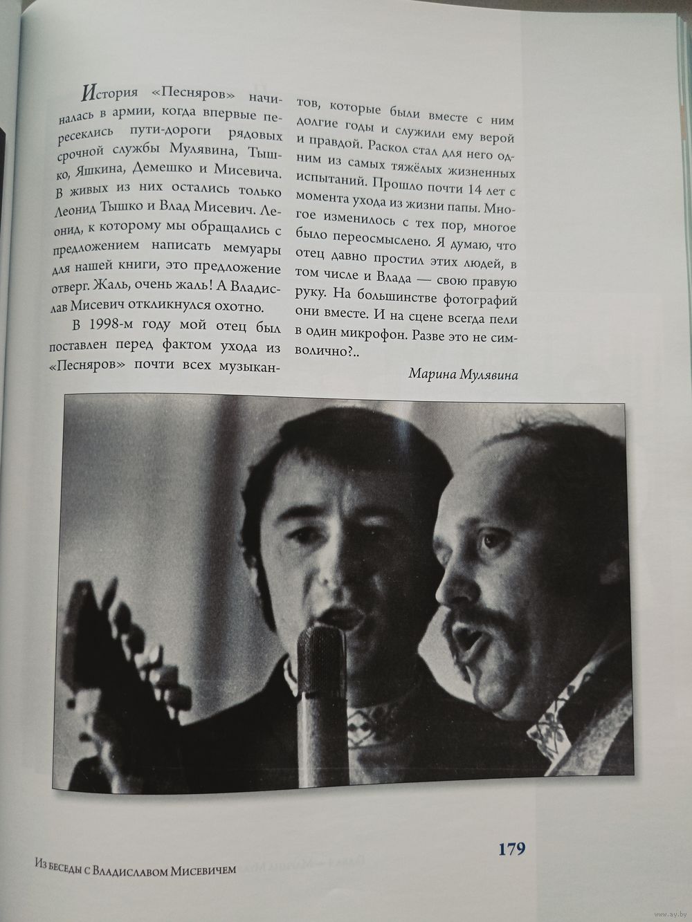 «В книге не только собраны интересные исторические факты, связанные с персоной Владимира Георгиевича, и представлены уникальные фотографии, но также впервые опубликованы письма Владимира Мулявина и Лидии Кармальской, относящиеся к армейскому периоду жизни отца, - отметила Марина МУЛЯВИНА. – Конечно, было очень тяжело решиться на обнародование переписки родителей, но это было необходимо сделать, потому что, в частности, в этом браке родились замечательные песни «Александрина», «Крик птицы», «Завушніцы», «Аве Мария». Удивительно даже не то, что мама сохранила все письма: женщины всегда более трепетно относятся к таким вещам. Удивляет, что и папа сохранил мамины письма»."