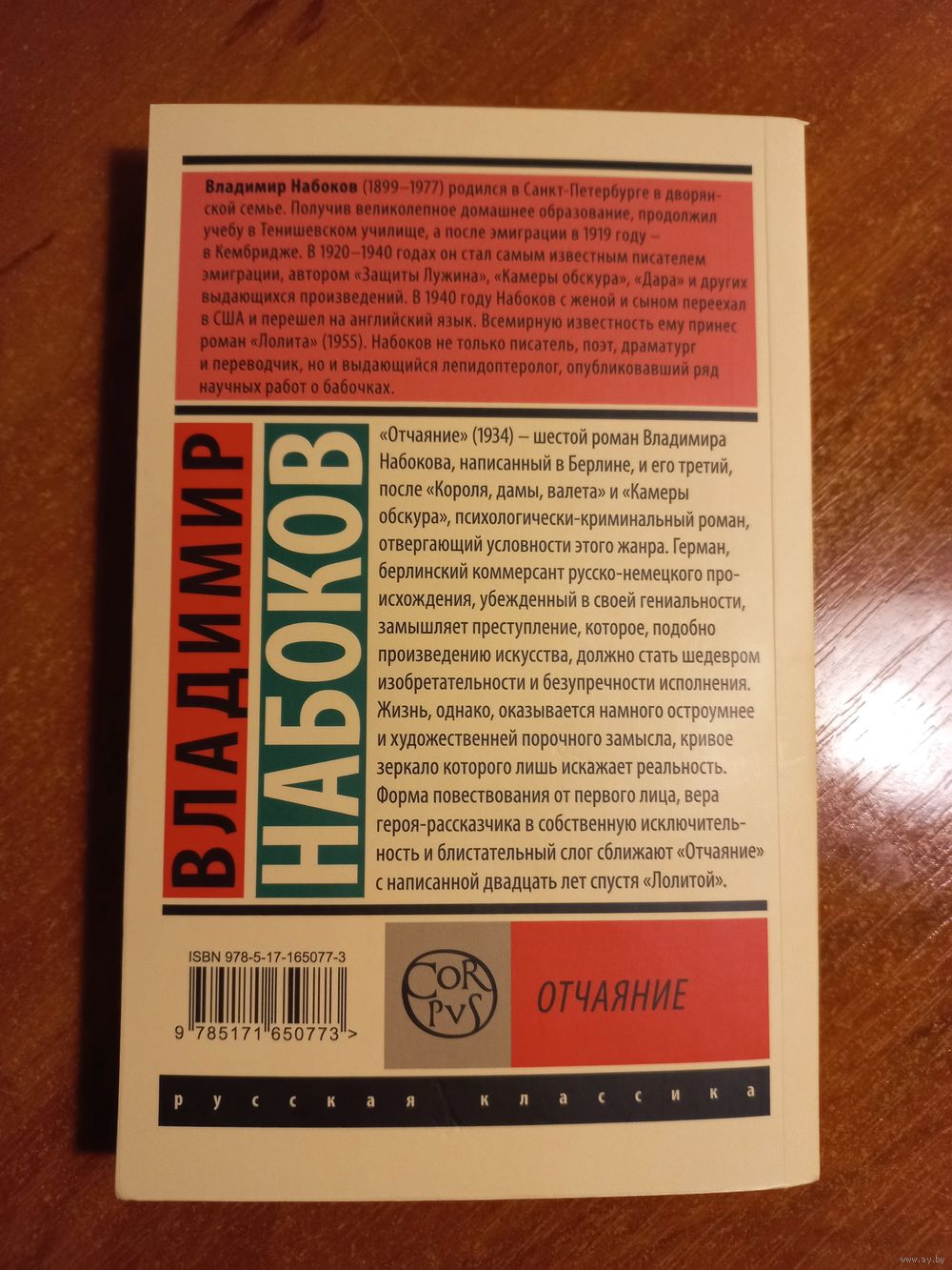 «Отчаяние» (1934) – шестой роман Владимира Набокова, написанный в Берлине, и его третий, после «Короля, дамы, валета» и «Камеры обскура», психологически-криминальный роман, отвергающий условности этого жанра. Герман, берлинский коммерсант русско-немецкого происхождения, убежденный в своей гениальности, замышляет преступление, которое, подобно произведению искусства, должно стать шедевром изобретательности и безупречности исполнения. Жизнь, однако, оказывается намного остроумнее и художественней порочного замысла, кривое зеркало которого лишь искажает реальность.