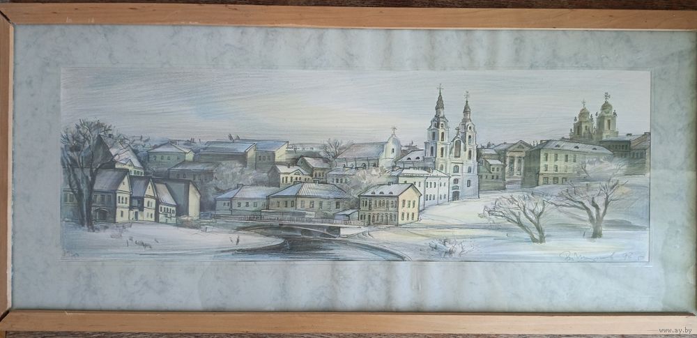 Картина "Минск стародавний. Панорама верхнего города" известного белорусского художника Владимира Шаркова. 1997 г.