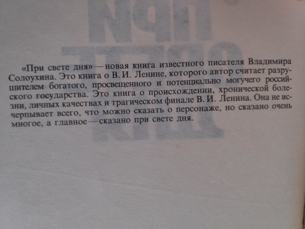 «При свете дня» — книга известного писателя Владимира Солоухина. Это книга о В. И. Ленине, которого автор считает разрушителем богатого, просвещенного и потенциально могучего российского государства. Это книга о происхождении, хронической болезни, личных качествах и трагическом финале В. И. Ленина. Она не исчерпывает всего, что можно сказать о персонаже, но сказано очень многое, а главное — сказано при свете дня.