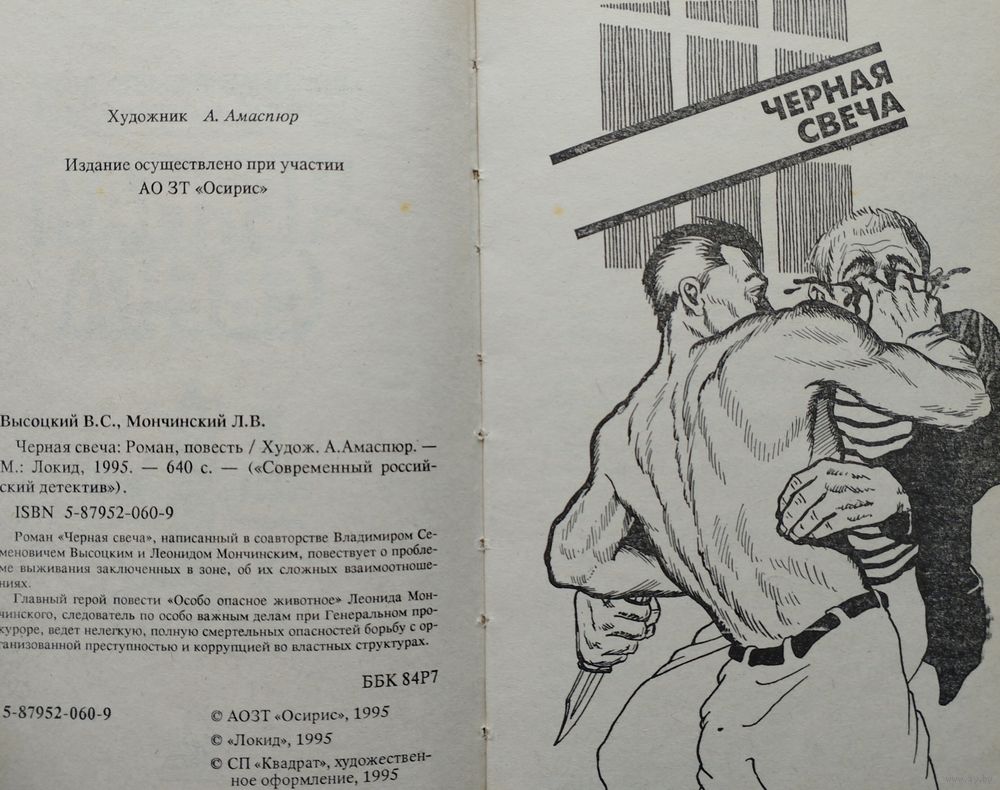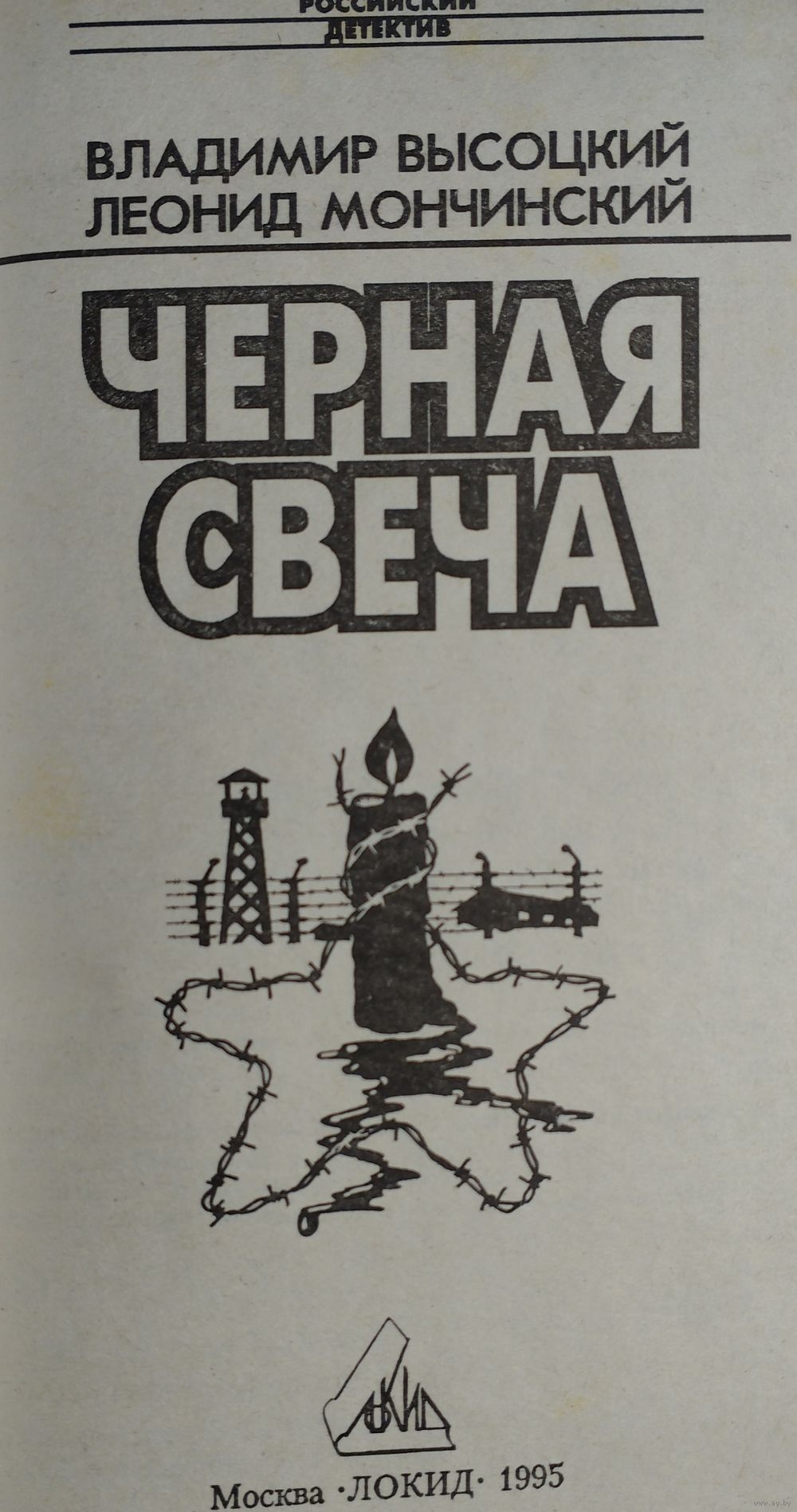 Тираж 26000 экз. 640 стр. Чёрная свеча — роман, написанный в соавторстве Владимиром Семёновичем Высоцким и Леонидом Васильевичем Мончинским. В романе описывается быт заключённых в лагерях ГУЛАГа. Роман повествует о проблеме выживания заключенных в зоне, об их сложных взаимоотношениях, о победе жизни над смертью.