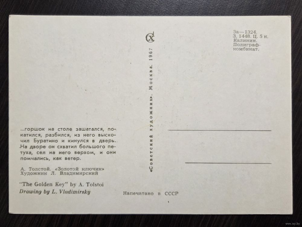Владимирский Золотой ключик 1967 чистая открытка СССР