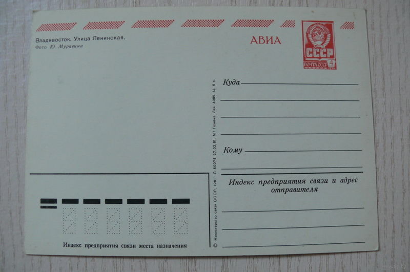 Владивосток. Улица Ленинская; 1981, чистая, ДМПК, АВИА.