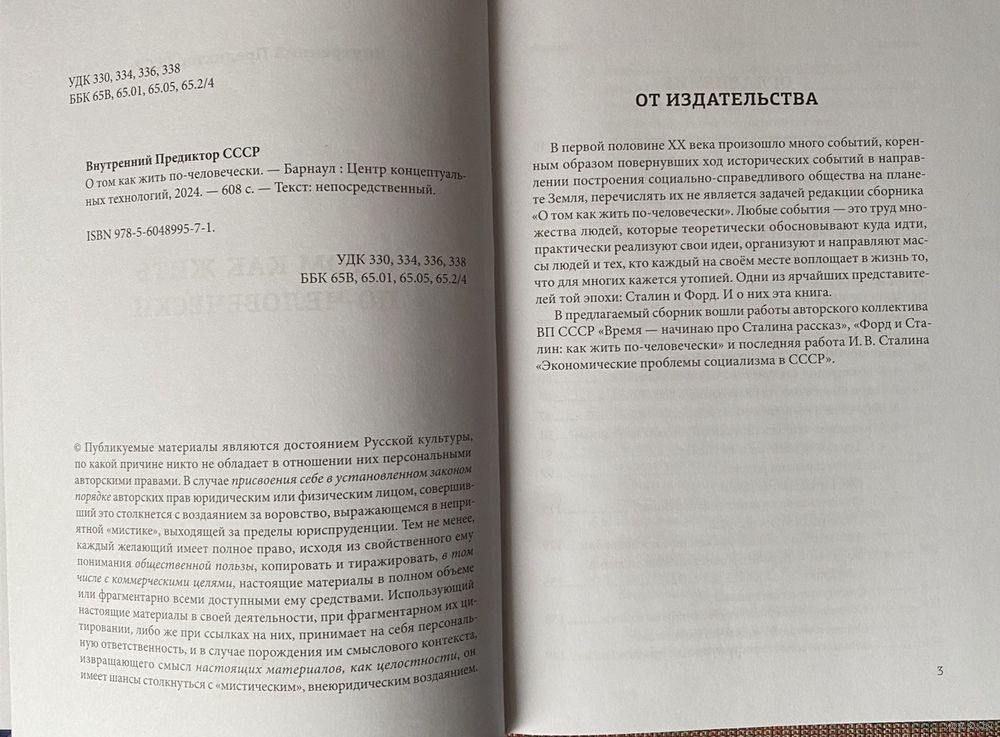 В первой половине ХХ века произошло много событий, коренным образом повернувших ход исторических событий в направлении построения социально-справедливого общества на планете Земля, перечислять их не является задачей редакции сборника «О том как жить по‑человечески». Любые события — это труд множества людей, которые теоретически обосновывают куда идти, практически реализуют свои идеи, организуют и направляют массы людей и тех, кто каждый на своём месте воплощает в жизнь то, что для многих кажется утопией. Одни из ярчайших представителей той эпохи: Сталин и Форд. И о них эта книга. В предлагаемый сборник вошли работы авторского коллектива ВП СССР «Время — начинаю про Сталина рассказ», «Форд и Сталин: как жить по‑человечески» и последняя работа И. В. Сталина «Экономические проблемы социализма в СССР».