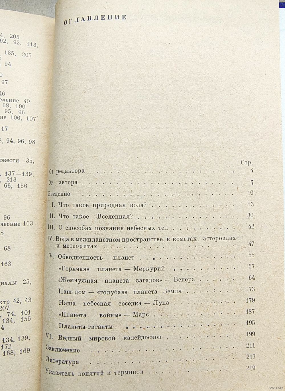 В этой книге в доступной форме описан характер распространенности различных соединений водорода и кислорода в космосе и на телах солнечной системы, что в свете успехов в изучении планет весьма актуально. Значительная часть книги посвящена водам нашей планеты --- Земли, причем они рассматриваются с различных точек зрения: и как самое необходимое и распространенное вещество, и как вещество, недостаточно изученное и приносящее крупнейшие бедствия.