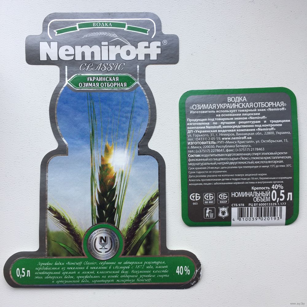 Водка "Nemiroff" (Озимая украинская отборная)