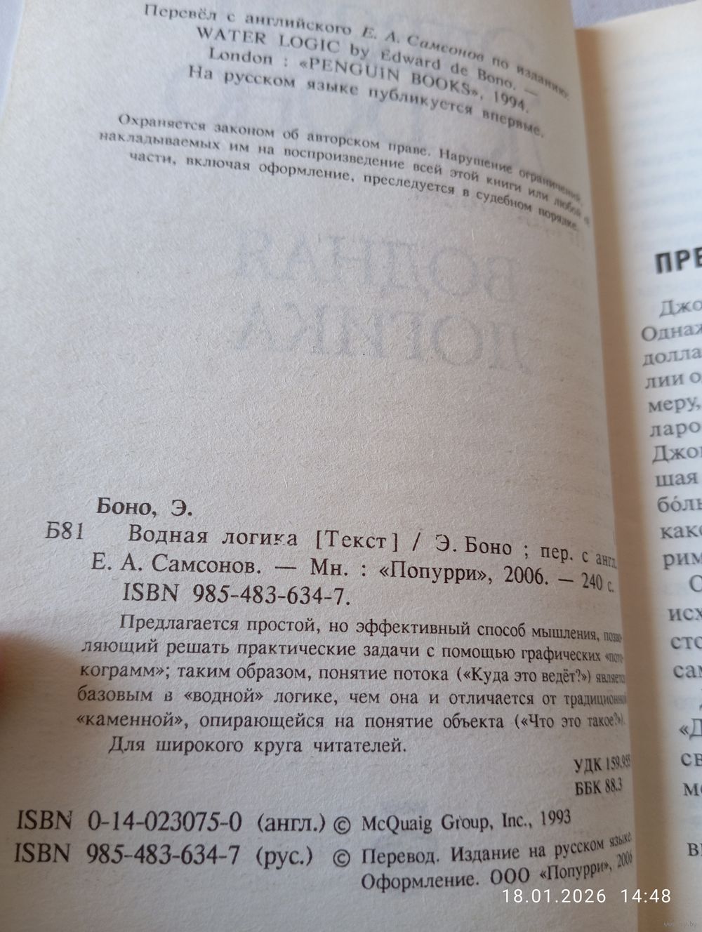 Эдвард де Боно. Водная логика. Мн. Попурри 2006. В прекрасном состоянии, тв переплет. 240 с. Тираж 3500 . Возможность отправки Белпочтой, полная предоплата