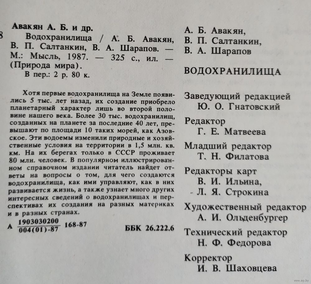 Авакян А.Б., Салтанкин В.П., Шарапов В.А. Водохранилища. Серия: Природа мира. Москва: Мысль, 1987г., 325с. Твёрдый переплёт. Энциклопедический формат.