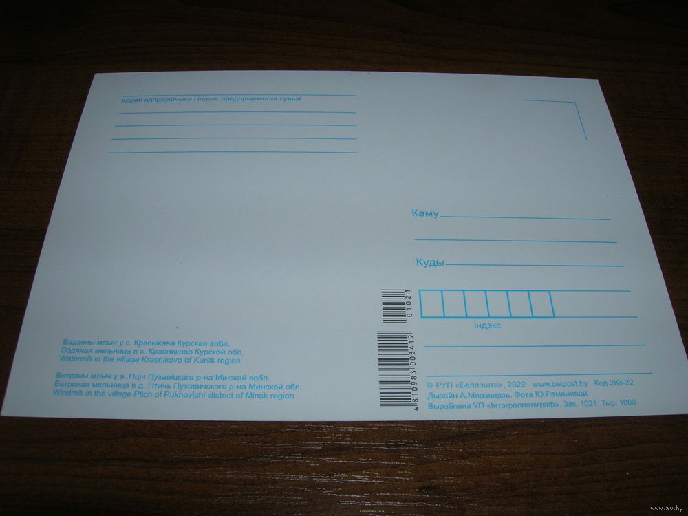 Водяная и ветряная мельницы Беларусь 2022 год Белпочта чистая