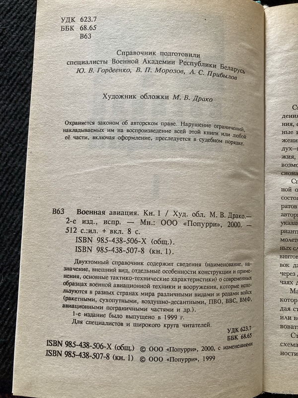 /10/ 512 стр. Справочник содержит сведения (наименование, назначение, внешний вид, отдельные особенности конструкции и применения, основные тактико-технические характеристики) о современных образцах военной авиационной техники и вооружения, которые используются в разных странах мира различными видами и родами войск (ракетными, сухопутными, воздушно-десантными, ПВО, ВВС, ВМФ, авиационными пограничными частями и др.).