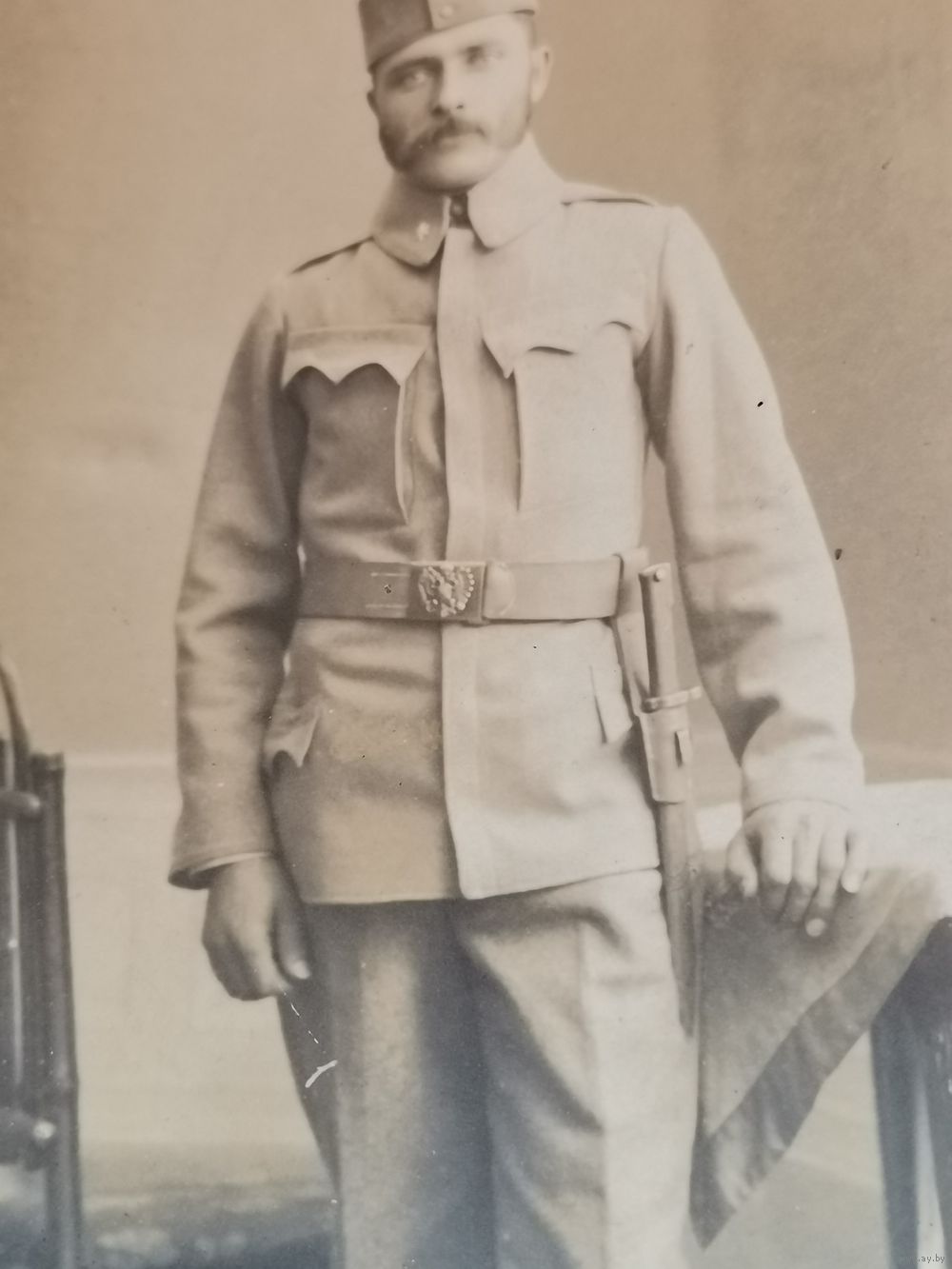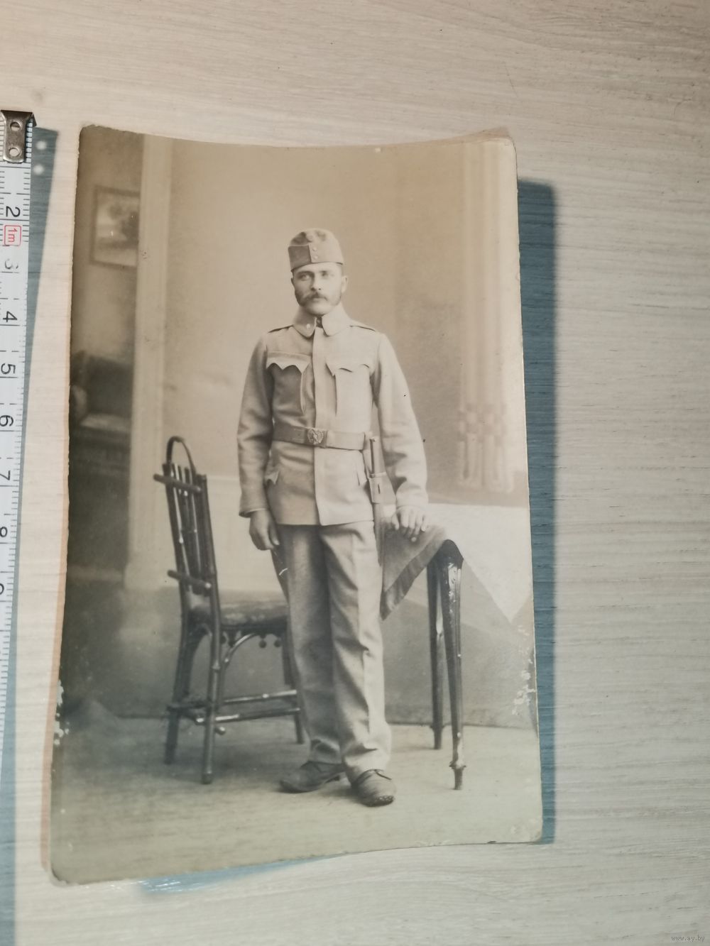 Военнослужащий с кортиком в форме Сербской Армии, времён Балканских войн или ПВМ, размер 14*9 см.