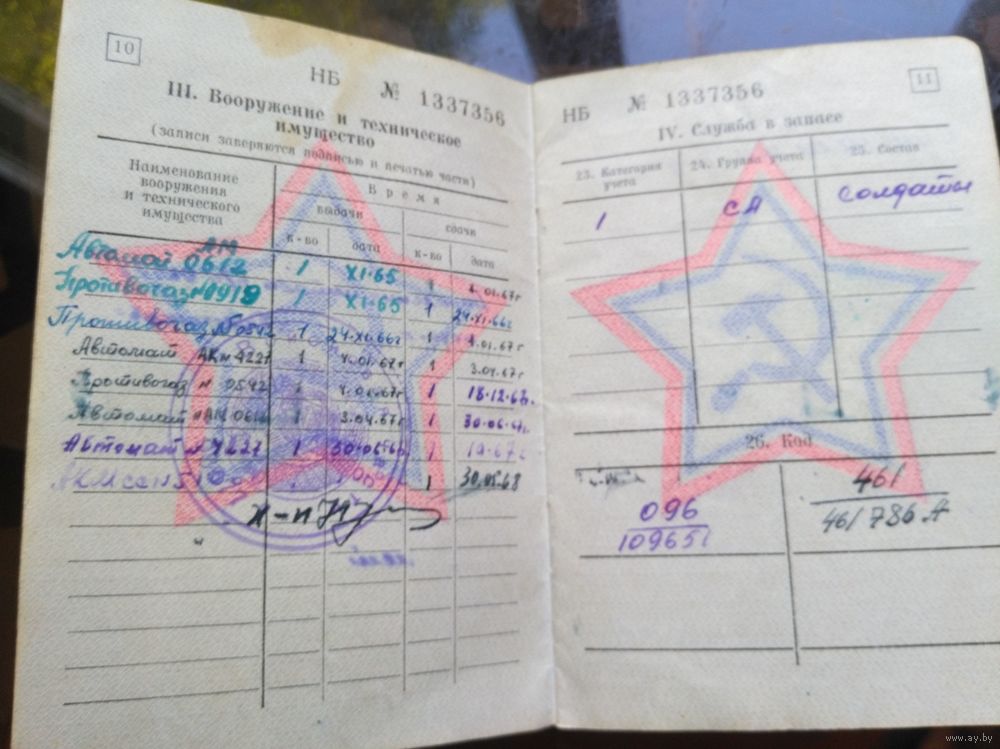 Военный билет 1965 год с учётно-послужной карточкой и мобилизационным предписанием Бобруйск