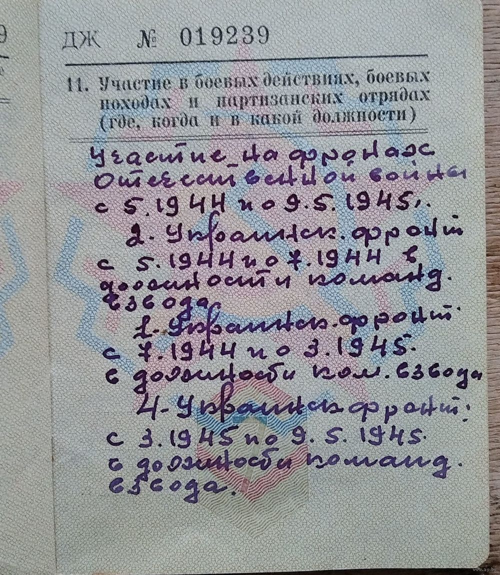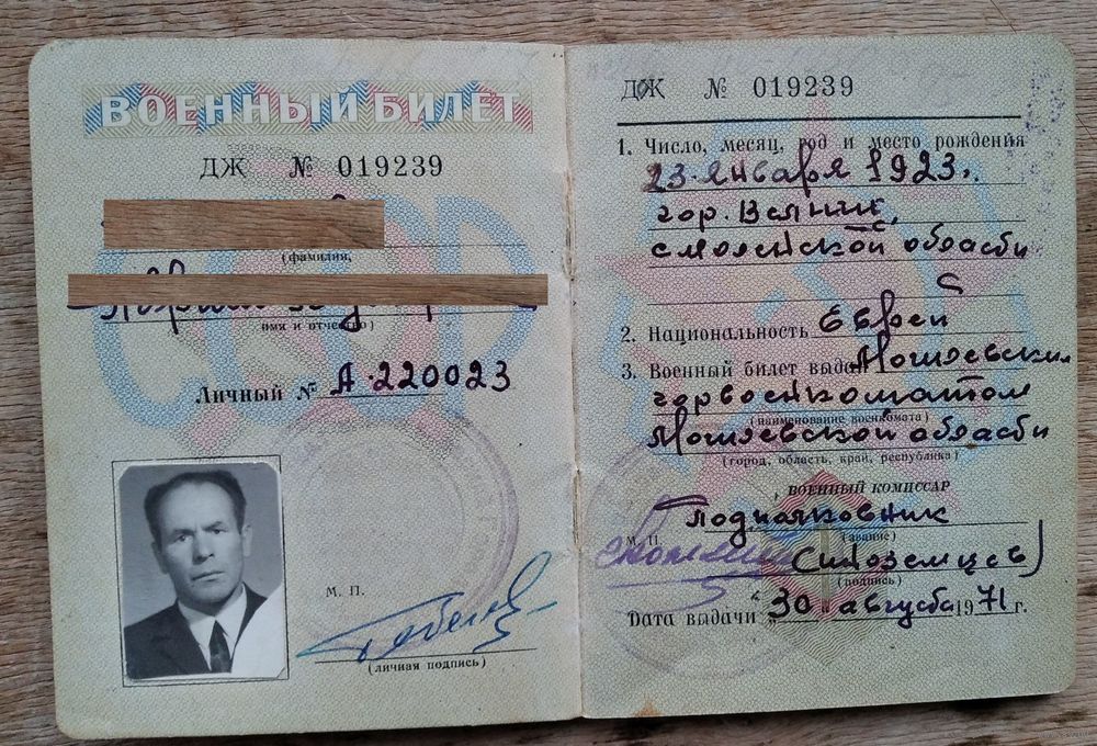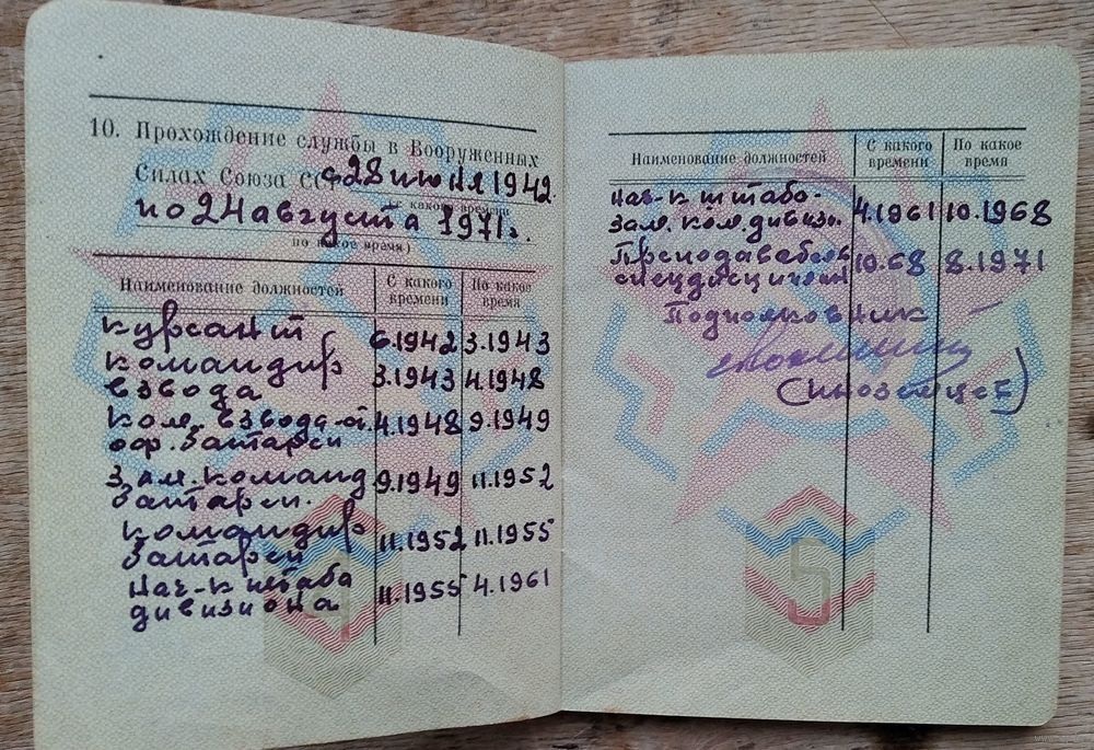Военный билет подполковника, участника ВОВ и другие его документы. 1