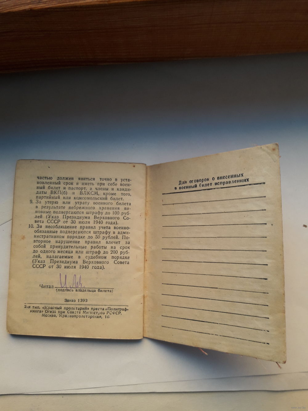 Военный билет СССР