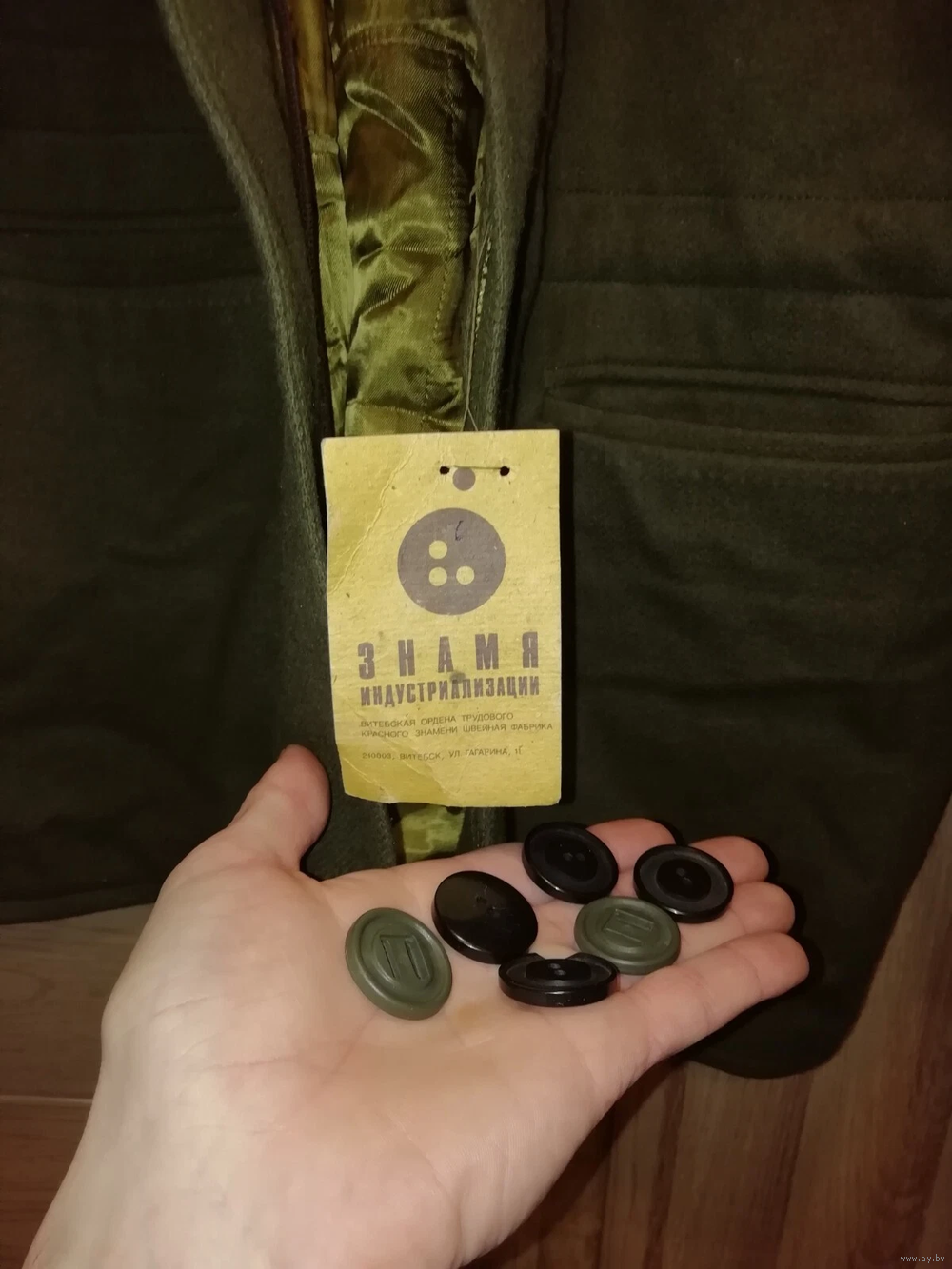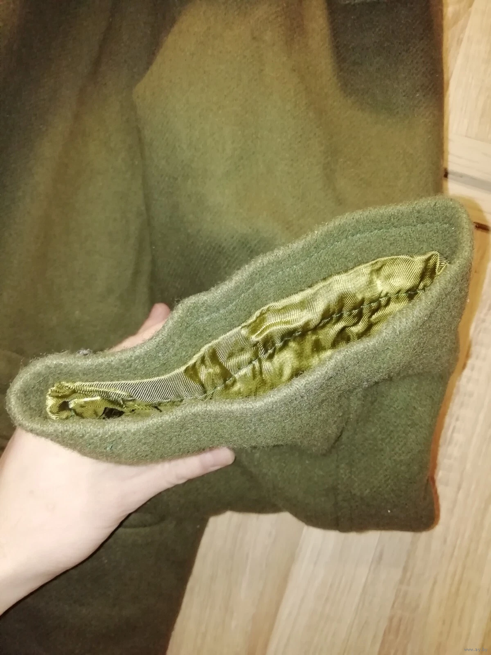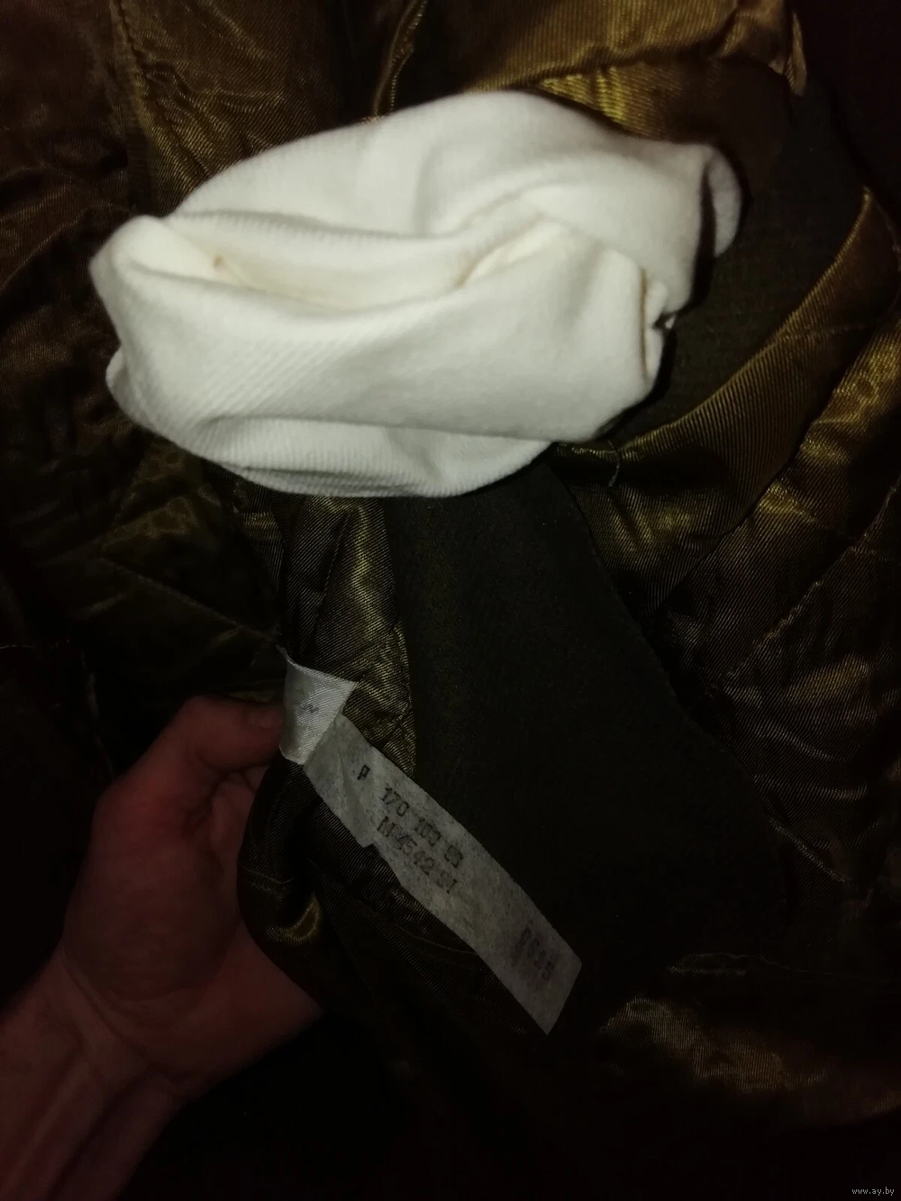1 внутренний карман слева. Кусок ткани, заплатка и пуговица для ремонта. Внутри карманов белая ткань. Неизвестно, к каким войскам это относится! Золотистая мягкая подкладка Оригинальная заводская бирка.