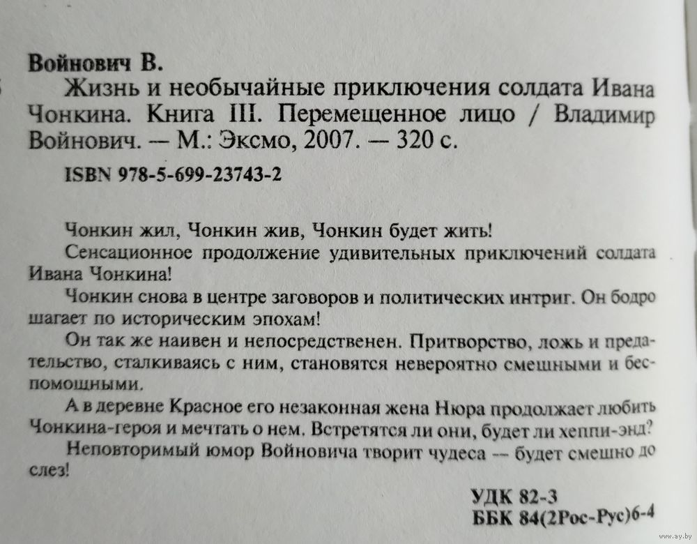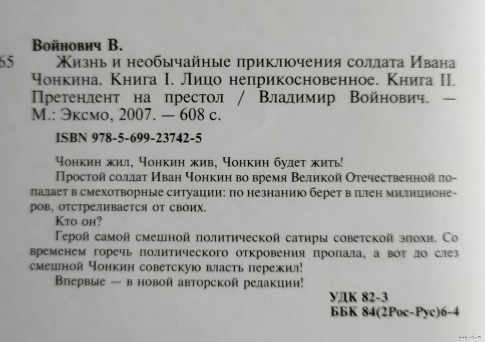 Войнович Владимир Николаевич. Жизнь и необычные приключения солдата Ивана Чонкина. 1. Лицо неприкосновенное. 2. Претендент на престол. 3. Перемещенное лицо. Москва: Эксмо, 2007г., 604+315с. Твёрдый переплёт, обычный формат.