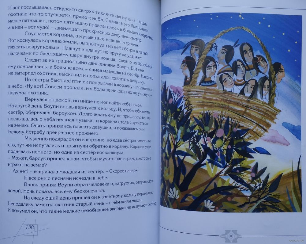 Большой энциклопедический формат. Мелованный альбом. Тираж 7000 экз. 168 стр. Иллюстрации Нины Костеревой. Чудеса в индейских сказках происходят всегда и повсюду. Если ты посмотришь вокруг повнимательней, то обязательно увидишь, что и выдумывать-то ничего не нужно: самые удивительные сказки - от матушки-природы. А индейцы Северной Америки всегда оставались ее родными детьми. Поэтому природа и была для них не только основой всей жизни, но и неиссякаемым источником удивительных, порой волшебных историй. Самые простые люди становились героями, а их приключения долгое-долгое время хранились в памяти сказителей и вечерами вновь и вновь оживали у горящих костров.