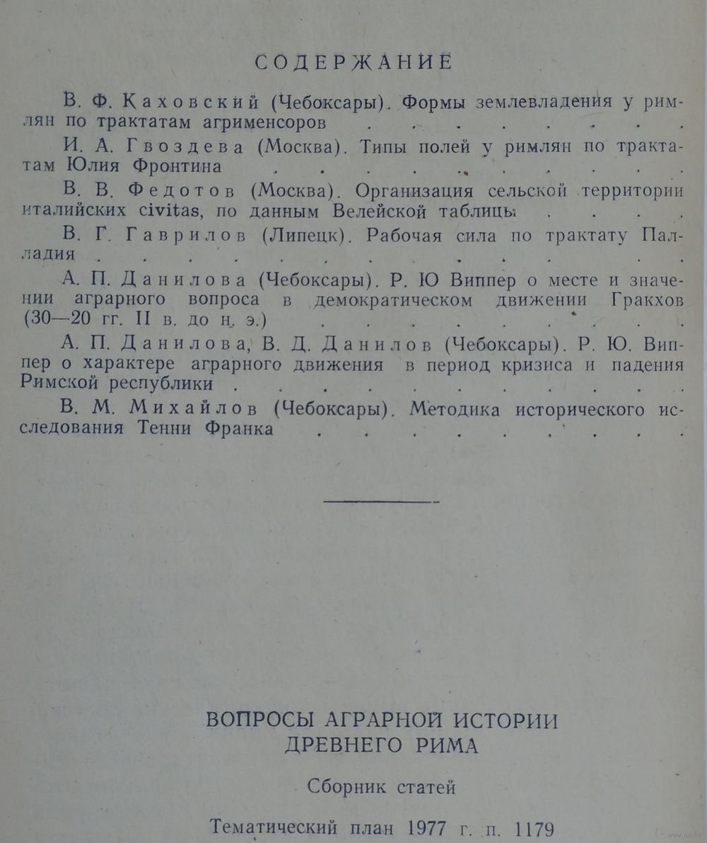 В сборнике содержатся также статьи по проблемам историографии аграрных отношений в Древнем Риме.