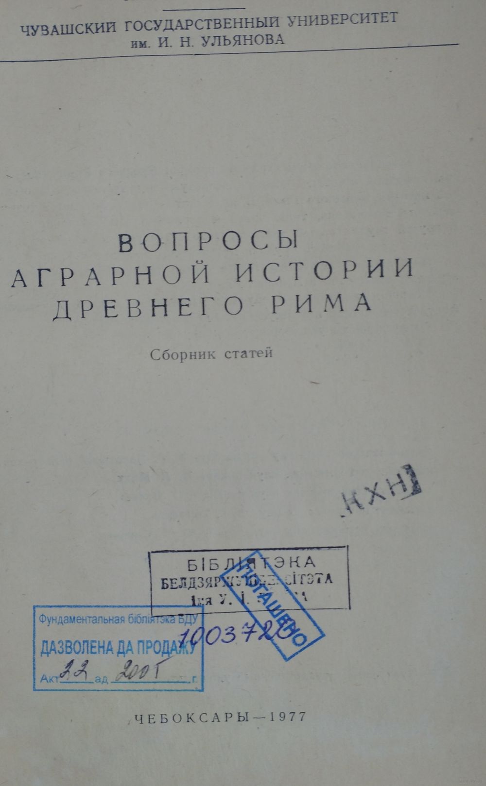 Тираж 500 экз. В сборнике «Вопросы аграрной истории Древнего Рима», подготовленном кафедрой всеобщей истории, исследуются актуальные вопросы аграрной истории античного Рима. В ряде статей рассматриваются техника земельного межевания, типы полей и эволюция землевладения у римлян. В другой группе статей анализируется структура сельской общины, выясняется роль рабского труда в итальянском поместье в IV в. н. э.