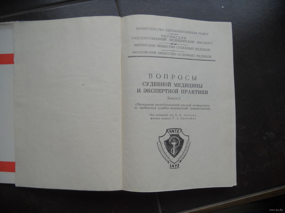 Вып. 5. Материалы республиканской научной конференции по проблемам судебно-медицинской травматологии. Под ред. В.И. Акопова, Г.А. Пашиняна. Чита. Минздрав РСФСР.-ЧГМИ.-ЧОСМ.-МОСМ. 1973г. 400 с. Твердый переплет, обычный формат.