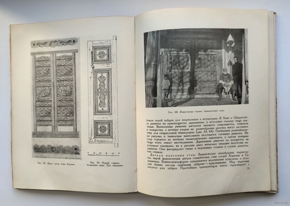 Воронина В.Л. Народные традиции архитектуры Узбекистана. М.: Государственное издательство архитектуры и градостроительства, 1951г., 168с. Твёрдый переплёт, увеличенный формат.
