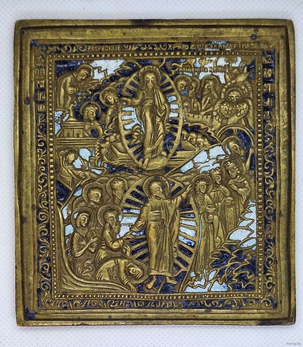 Икона, меднолитая, Воскресение Христово, Сошествие в ад. Размер: 10х10,8 см. Две эмали. Очень хороший рельеф.