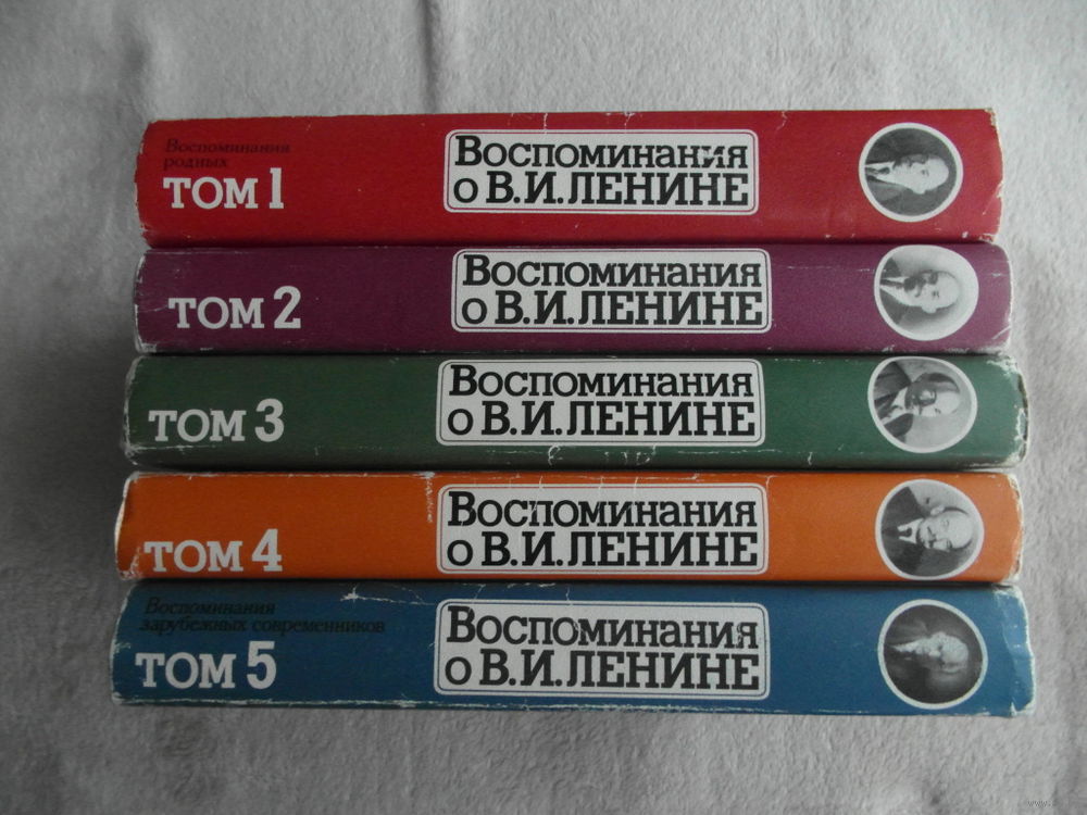 Т.1. Воспоминания родных. Т.2. (Мемуары, освещающие период с 1891 до победы Великой Октябрьской социалистической революции). Т.3. (Вспоминания современников В.И.Ленина о его деятельности в период от Великой Октябрьской социалистической революции до весны 1920 года). Т.4. (Воспоминания старейших членов Коммунистической партии, соратников и современников В.И.Ленина, партийных, советских, хозяйственных и комсомольских работников, деятелей работы и культуры, рабочих, крестьян и красноармейцев, людей, близко знавших Ленина и работавших под его непосредственным руководством. Хронологически они охватывают период жизни и деятельности В.И.Ленина с весны 1920 по январь 1924 года). Т.5. Воспоминания зарубежных современников.