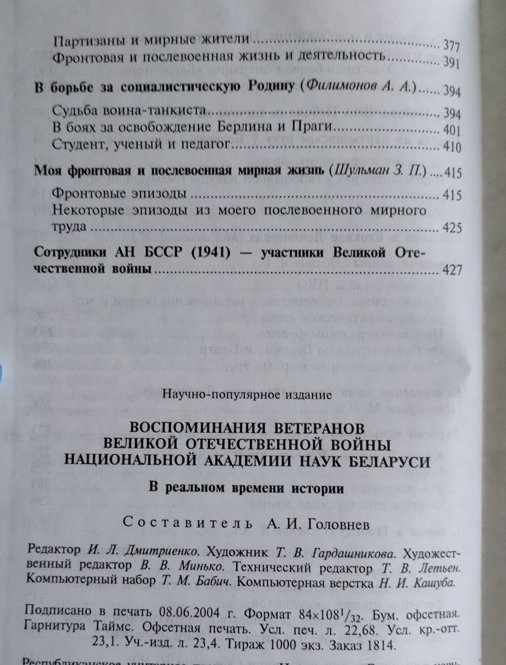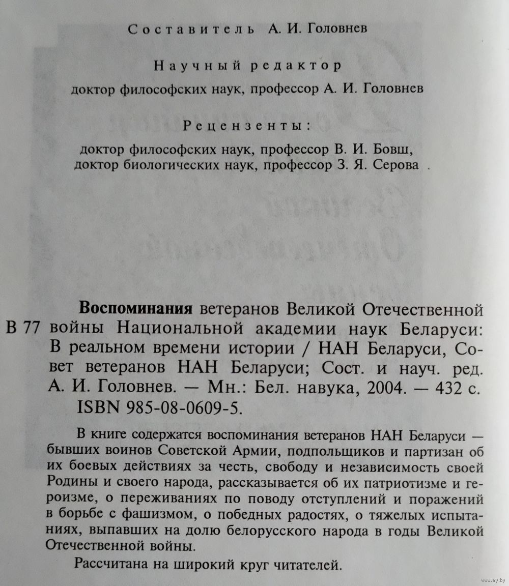 Воспоминания ветеранов ВОВ. Беларуская навука, 2004г., тираж -1000 экз.