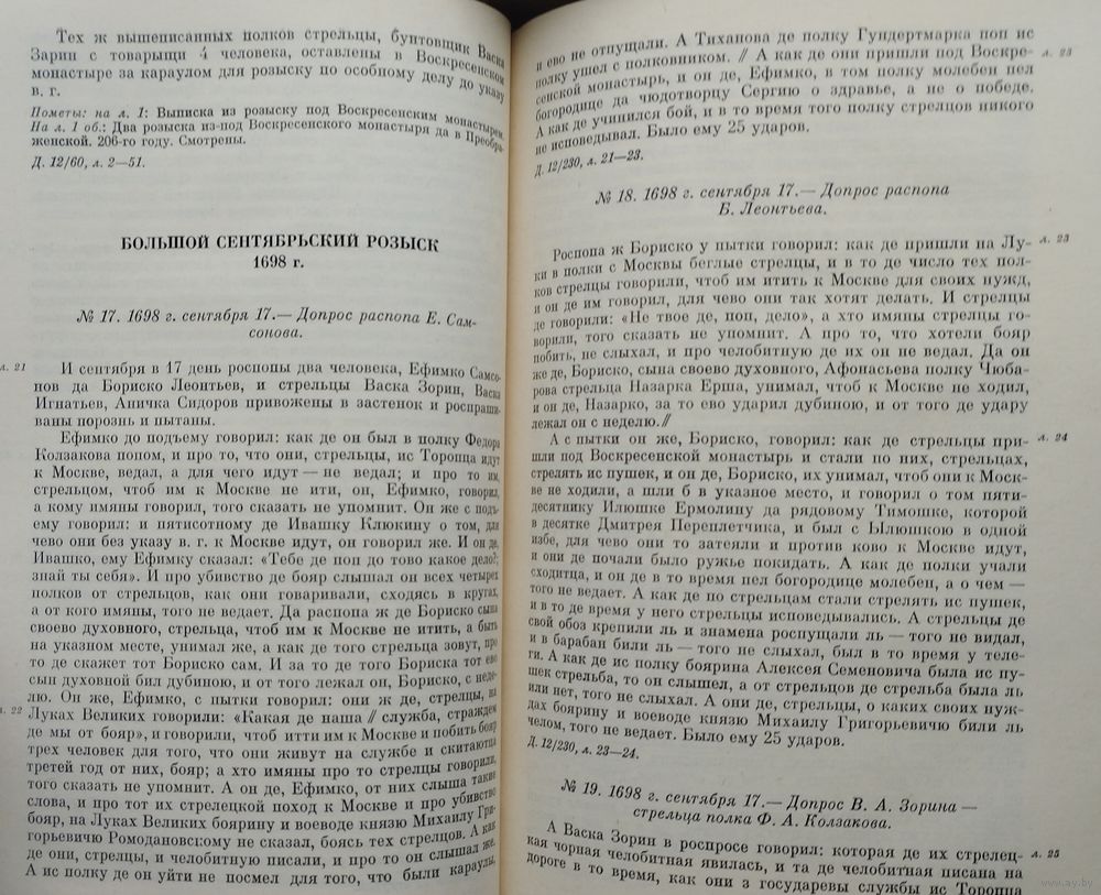 Большой формат. Тираж 3300 экз. 328 стр. В сборнике представлены документы следственного дела о восстании московских стрельцов 1698 года, освещающие причины и ход его. В археографическом и источниковедческом обзоре даны сведения о составе основных дел розыска, в комментариях - описание отдельных документов и дел, не вошедших в сборник. Книга рассчитана на специалистов-историков, аспирантов, студентов и преподавателей исторических вузов.