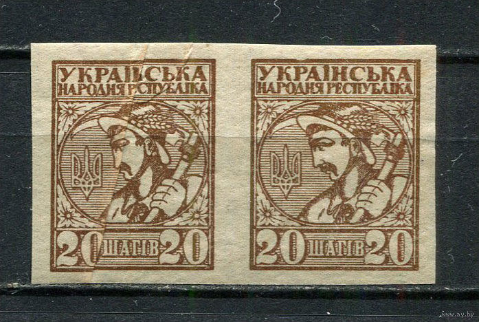 Восточная Украина (Гражданская война) - 1918 - Символы Украины 20шаг - (сцепка с помятостью) - [Mi.2B] - 1 марка. MH. (Лот 7Jo)-T4P15