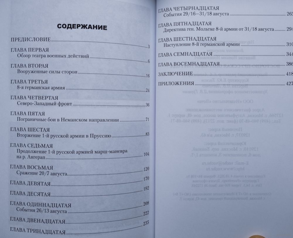 Тираж 800 экз. 464 стр. Иоаким Иоакимович Вацетис (1873—1938) — российский офицер и видный советский военачальник — первый главнокомандующий всеми Вооруженными Силами РСФСР, командарм 2?го ранга, профессор Военной академии РККА. Перу Вацетиса принадлежит несколько ценных научных трудов по истории боевых действий русской армии в Первой мировой войне. Один из них — «Операции на восточной границе Германии в 1914 г.» — предлагается вниманию читателя. Автор на основе многочисленных донесений, директив и приказов, телеграмм и воспоминаний участников событий подробно рассматривает ход боевых действий в Восточной Пруссии в 1914 г. и анализирует причины поражений русской армии.