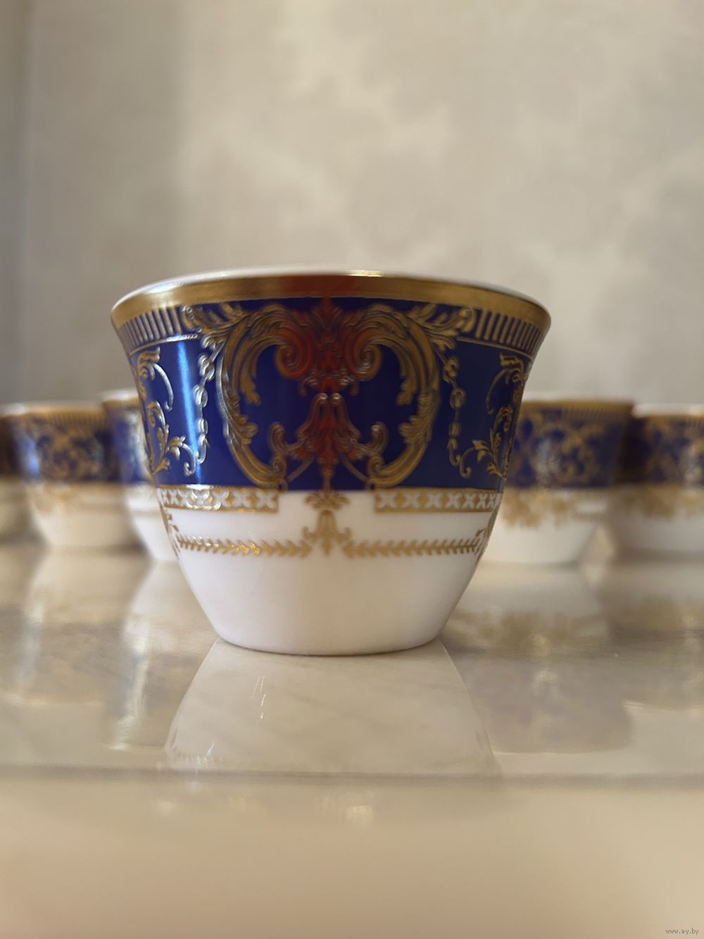 Красивые пиалки для кофе и чая с молоком кобальт золото