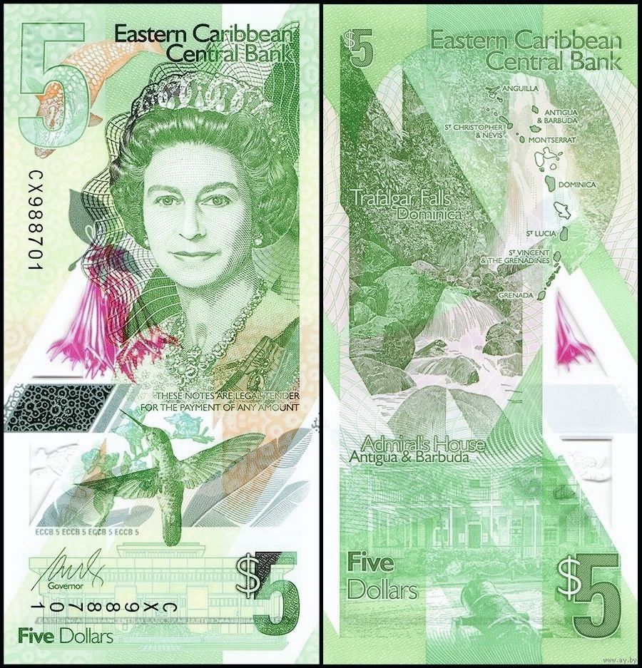 Восточные Карибы 5 долларов образца 2021 года UNC pw56 серия DA