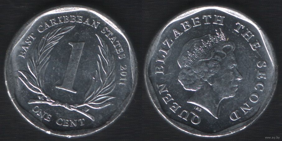 Восточные карибы km34 1 цент 2011 год km34a (1-низк,шир)(заостренный бюст снизу) (nf02