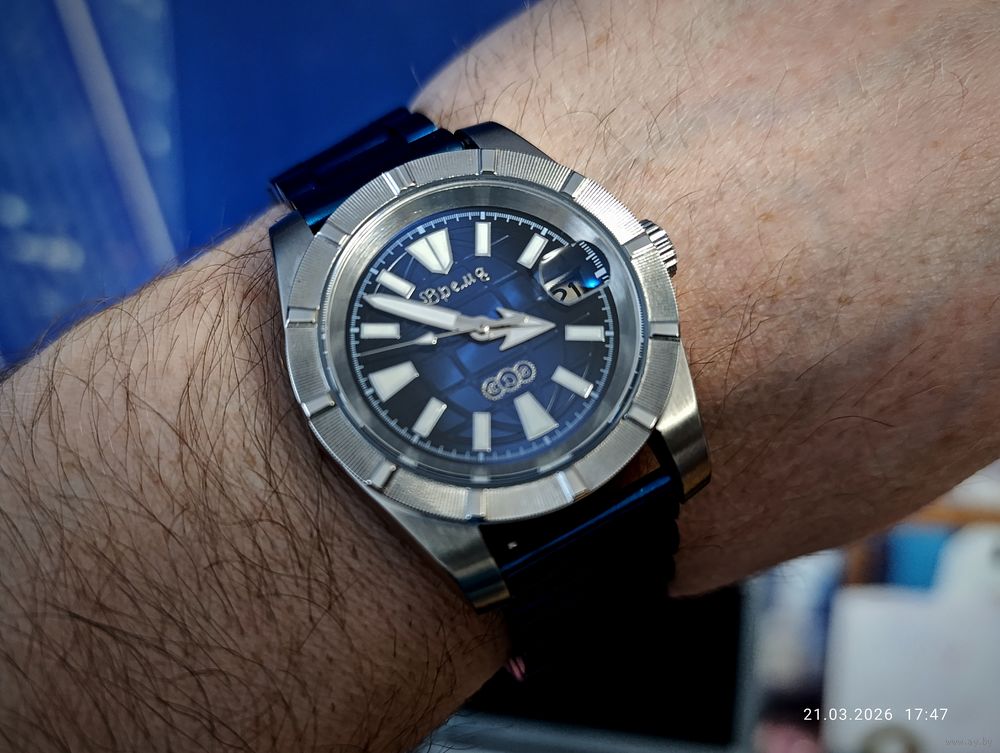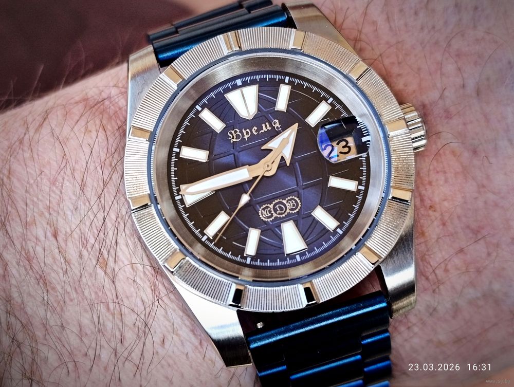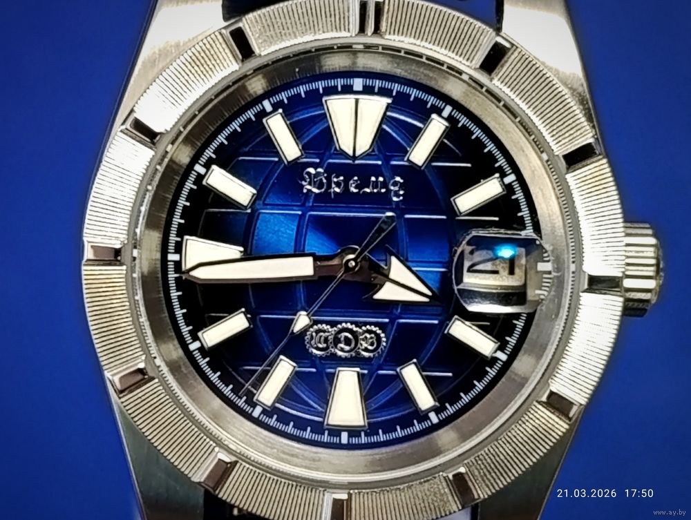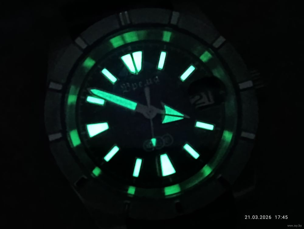 Яркий люминофор на циферблате и стрелках.