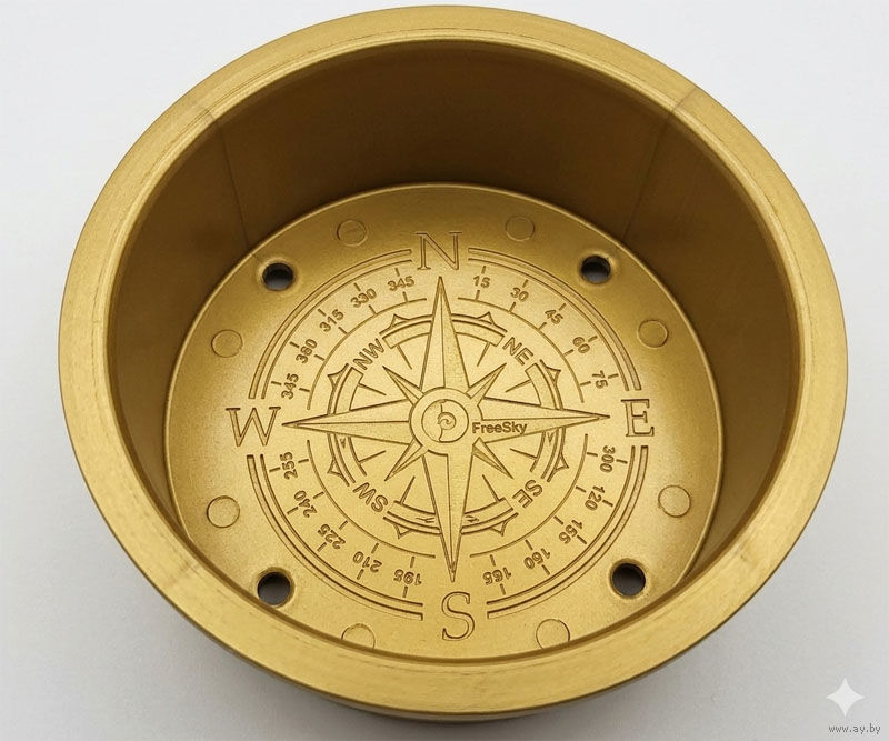 - Стиль «Свободного моря»: Дно украшено детальной гравировкой румб-компаса, подчеркивающей статус изделия.