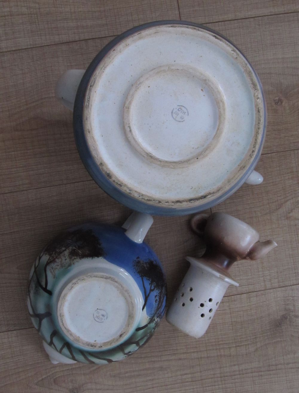| на среднем чайнике внутри есть скол по внутреннему краю-см.фото,снаружи не заметен | |