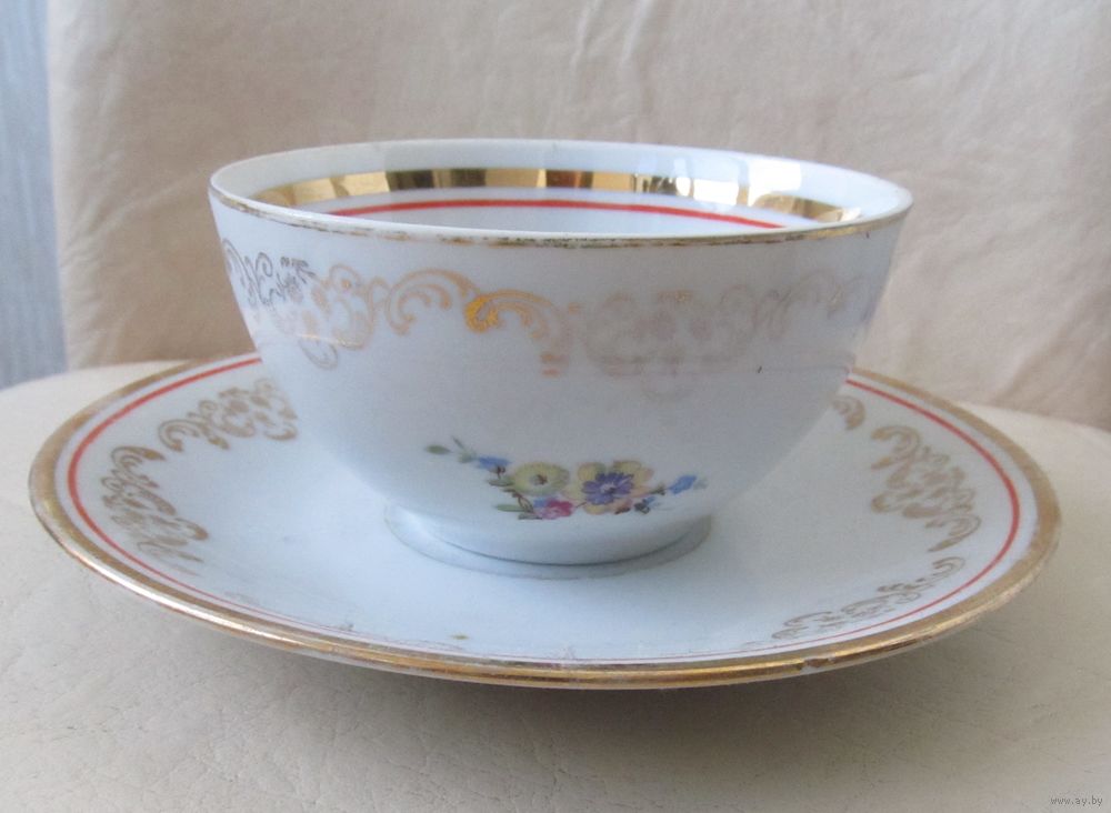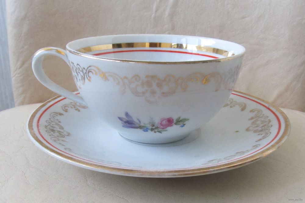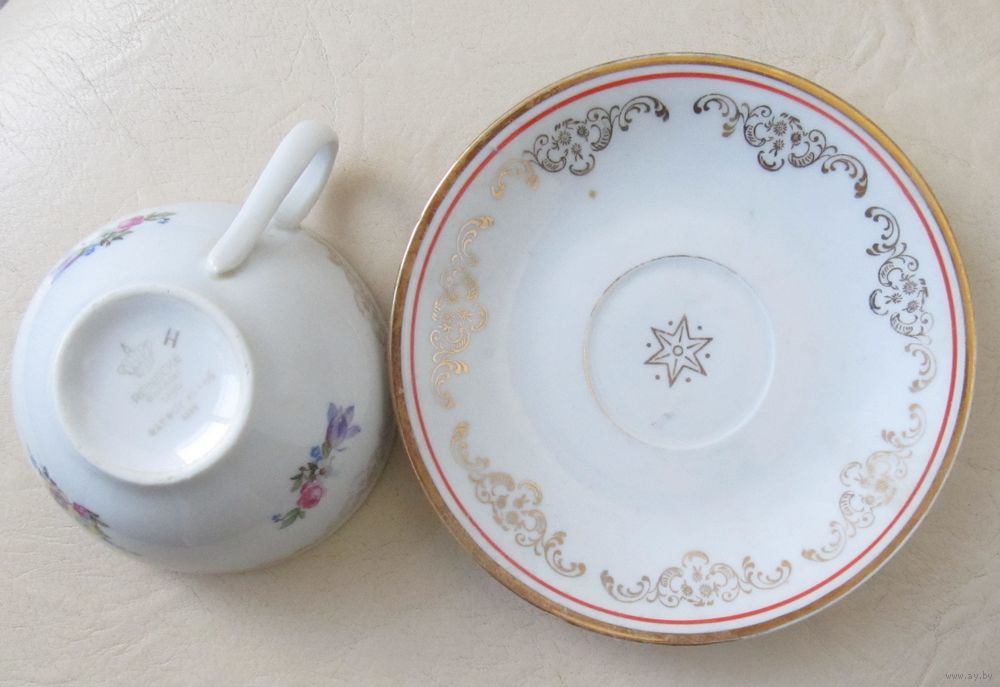 Все лоты с рубля.Чайная пара REINECKE GEGRUNDET,тонкий фарфор,ГДР