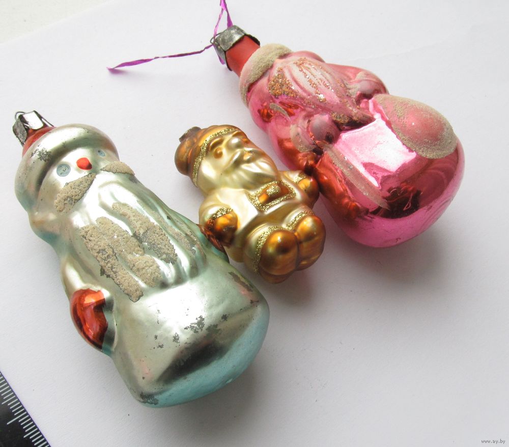Все лоты с рубля.Елочные игрушки Дед Мороз ,3 шт.,СССР.