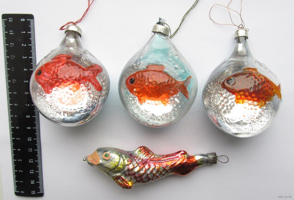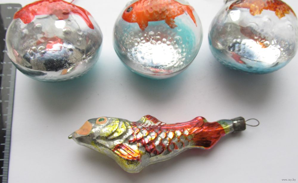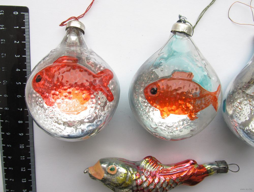Все лоты с рубля.Елочные игрушки Рыбы ,разновидности,СССР.
