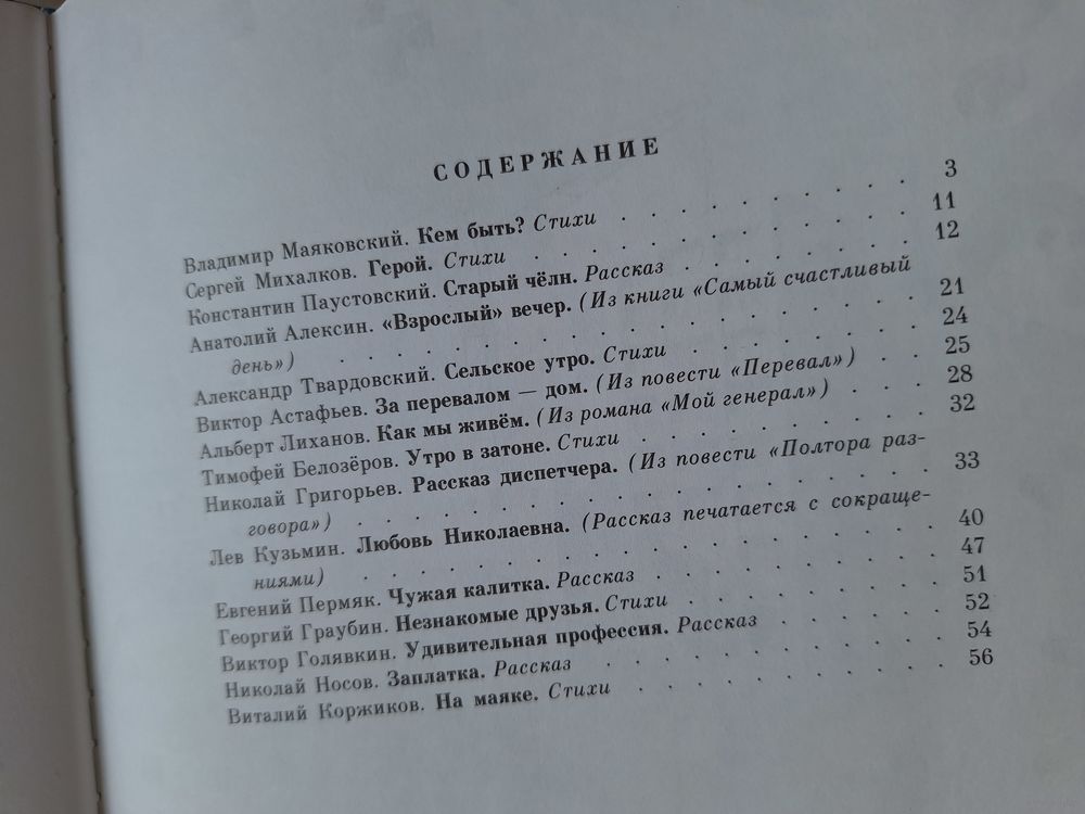 Автор | Маяковский, Михалков, Паустовский, Алексин, Твардовский, Астафьев, Лиханов, Кузьмин, белозёров, Григорьев, Пермяк, Голявкин, Носов, Коржиков и др |